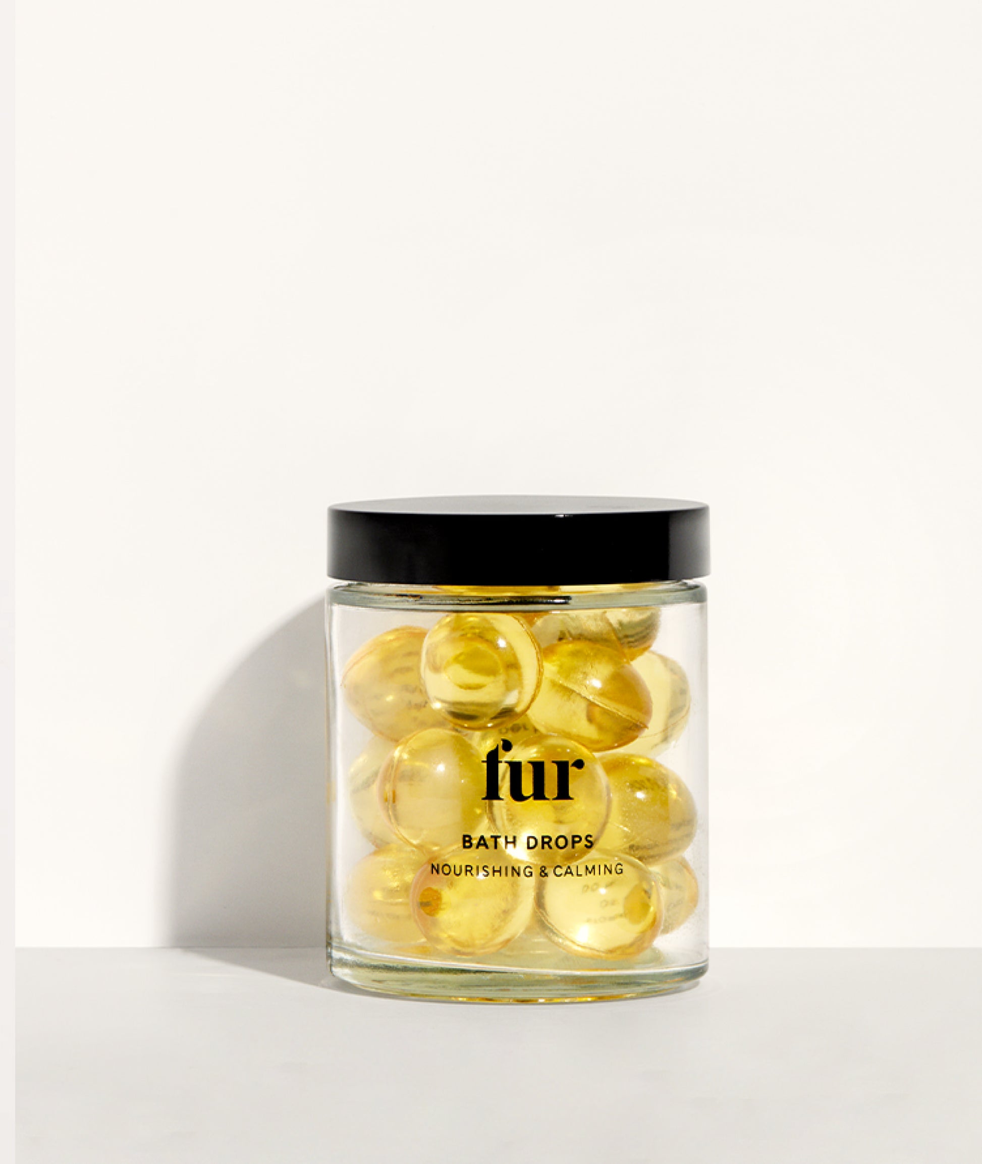 Introducing a better way to bathe. These seaweed-encased bath beads contain our signature Fur Oil and a blend of softening oils. They dissolve easily in warm water and gently nourish your skin, leaving you silky soft and relaxed. Unlike the bath beads of the 90s, which were produced with gelatin casings, Bath Drops contain absolutely zero animal products and are made with clean ingredients. Drop 2-3 into your bath for a replenishing soak.